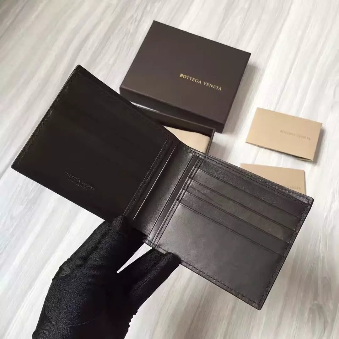 BV黑色编织刺绣双折钱包,原版打蜡小牛皮精心打造,配以刺绣网格效果,彰显强烈的生动质感。是你的品味生活之选。尺寸11x9